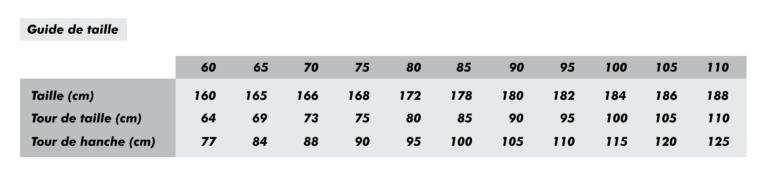 | Taille | 60, 65, 70, 75, 80, 85, 90, 95, 100, 105, 100 |